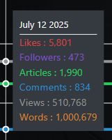 The rules I initially set for myself at the beginning of the event pushed me to my limits, causing me to struggle just one week into the competition. That led me to basically flop about the rest of July and August, struggling to write anything truly meaningful. Next year I'm going to go back to what I do best, which is writing shorter, concise articles. I've been told I write short articles well, which reassures me!
